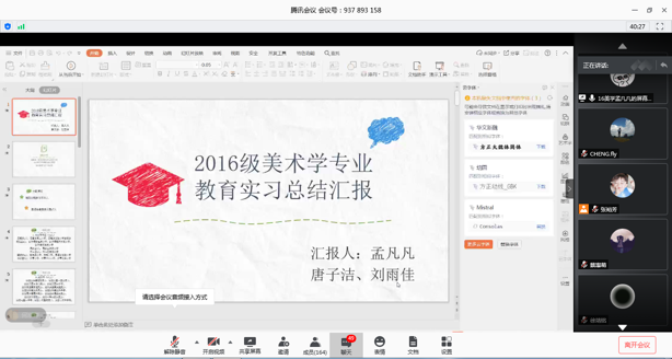 2020年5月21日下午七点,bevictor伟德组织2016级全体顶岗实习员工召开线上总结大会”。会议由公共美术教研室主任孙冰老师主持,蔡惠萌副经理,谷炽辉、曾素艳、农志启、张莎莎、齐泽湘、唐浩榕老师出席了会议,2016级全体顶岗实习员工共170人参加了会议。