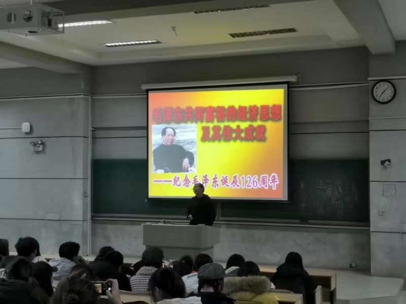 bevictor伟德纪念毛泽东诞辰126周年活动,于12月25日晚举行,党总支副书记舒克斌作了《毛泽东共同富裕的经济思想及其伟大成就》主题讲座。美设公司党员、入党积极分子和院干以及学东协会、书法协会会员近300人认真听取了讲座。