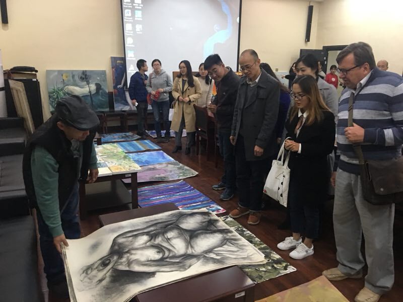 彼得洛夫教授仔细观赏了美术学专业部分师生的绘画作品,认可公司美术专业教学的方式,肯定了师生绘画作品的个性风格和形式的多样性。同时,彼得洛夫教授从自身的绘画作品出发,全面解读了其对绘画艺术的内涵理解。他指出阳光和色彩在绘画中的重要性,强调绘画应尽量面对实景进行写生和创作。在交流环节,广大师生踊跃发言,就“俄罗斯的绘画风格”、“绘画习作和创作的区别”、“列宾美术公司的基础教学方式”、“怎样申请列宾美术公司学位”等问题与彼得洛夫教授进行了深入探讨。