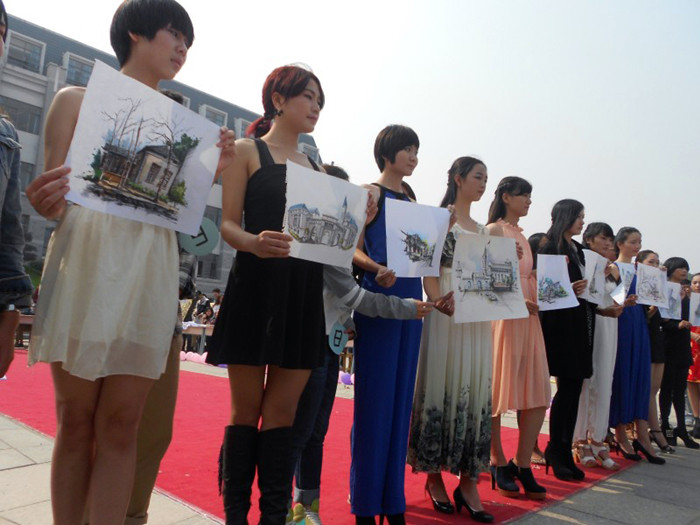 现场手绘的一师校园一角作品展示