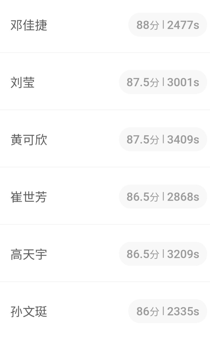 最终,6位同学在党史知识竞赛中脱颖而出,将于4月22日代表公司参加全校的党史知识竞赛:邓佳捷、18级环境设计1班刘莹、18级792美教班黄可欣、19级书法学1班崔世芳、17级书法学1班高天宇、18级美术学1班孙文珽。
