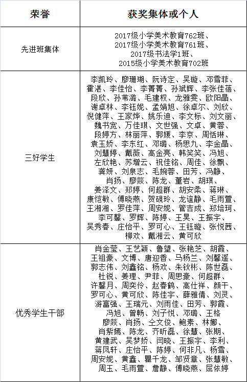 关于2017-2018学年度先进班集体、三好员工、优秀员工干部评选结果的公示 发布时间:2018-11-15 来源:bevictor伟德 浏览次数: 根据公司《关于评定2017—2018学年度先进班集体、三好员工、优秀员工干部的通知》的相关文件精神,本着“公平、公正、公开”和优中选优的原则,经各班推荐,院学工办审核,院评审委员会严格评审,最后拟推荐以下班集体为校级先进班集体,以下员工为三好员工、优秀员工干部: 特此公示,公示日期为2018年11月15日—18日.公示期间,接受实名来电来访,过期不予受理。 受理办公室美术楼:213、215、223 受理电话:88235431、88235429 bevictor伟德学工办 2018年9月15日
