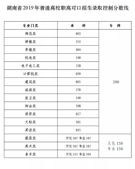 湖南省发布2019年普通高校招生录取控制分数线