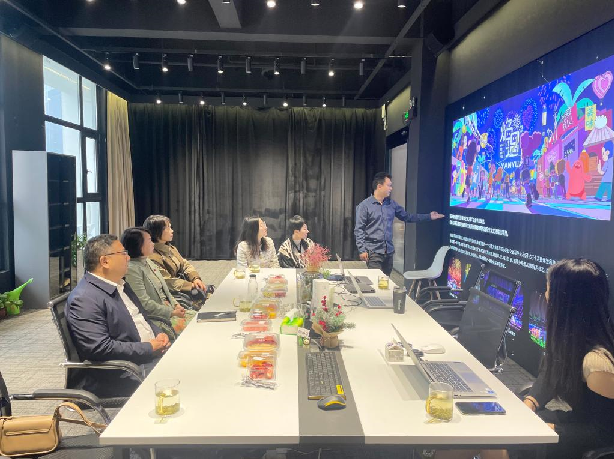 调研座谈会上,刘礼毓介绍了湖南花火剧团的基本情况及今后发展思路。他表示,打造烟花特色的文化IP,实现“烟花+艺术+文旅”的跨界融合是我们的发展方向,与时代一同进步、讲求创新,才能让浏阳烟花源远流长。他提出了与公司“共制、共创、共享”的合作意向。赵奇钊对湖南花火剧团“文化传承+创意赋能”的融合创新探索给予了高度评价,希望双方加强项目开发、人才培育、专业建设、文化传承等方面的交流合作,通过文化与科技的创意赋能,全力推进烟花产业与创意设计、媒体艺术深度融合,共同擦亮享誉世界的文化名片。蔡惠萌表示湖南花火剧团用烟花和火种来讲故事,打造了湖南乃至中国独一无二的文化名片。她希望bevictor伟德的视觉传达专业、环境设计专业能和产业需求实现深度融合,提出双方可以共同开展横向科研项目、共同研发课程、共建实习实训基地等合作建议。随后,双方团队围绕产学研融合进行了深入探讨。