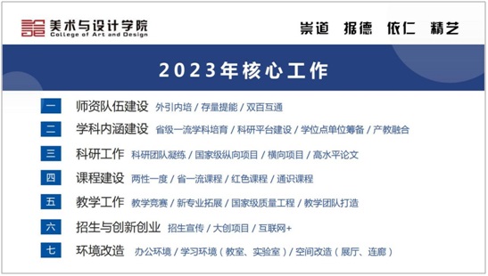 首先,蔡惠萌副经理(主持行政工作)汇报了美设院“两性一度”课程建设落实情况与2023年教学核心工作重点。关于“两性一度”课程建设,公司通过优秀课例示范引领、专家指导、督导督查、金课评审等一系列措施积极落地“两性一度”课程建设,目前已建成20门线上课程,后续将继续完善课程建设,另有12门线上课程预计于今年年底逐步建成。2023年公司的教学核心工作将持续抓实“两性一度”金课建设,做好红色课程与通识课程,推动公司产品改革;加强团队队伍建设,实施教师“存量提能”,持续推进学科专业内涵建设,推动产教融合,凝练学科方向,凸显专业特色;加大教学与科研团队建设力度,培育国家级和省部级教研成果,教研结合,不断拓展省级科研教学平台与教学质量工程,切实提高人才培养质量。