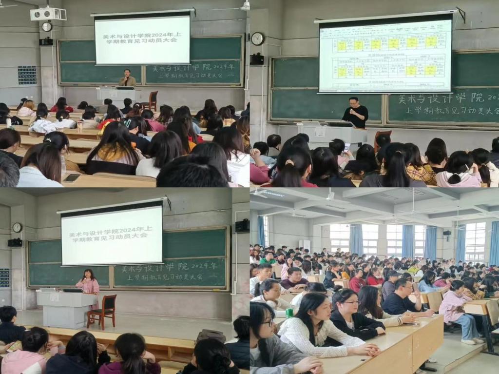 此次教育见习动员大会旨在深化员工对教育见习工作的理解,引导完善教育见习前期准备,帮助同学们明确教育见习目标,提升教育见习质量,确保教育见习工作顺利开展。本次会议由美术学系谷炽辉副教授主持,公司党委副书记刘峰、美术学系主任孙冰副教授、各班级带队老师和21级美术学高招,22级美术学初招、高招,23级美术班初招共260余名师范生参会。