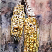 彭一邶 水彩画 干玉米,...